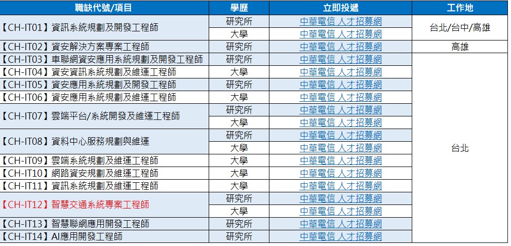 【114年校園徵才】現正招募中,歡迎同學於3/30(日)前至【中華電信人才招募網】完成履歷投遞,謝謝。
